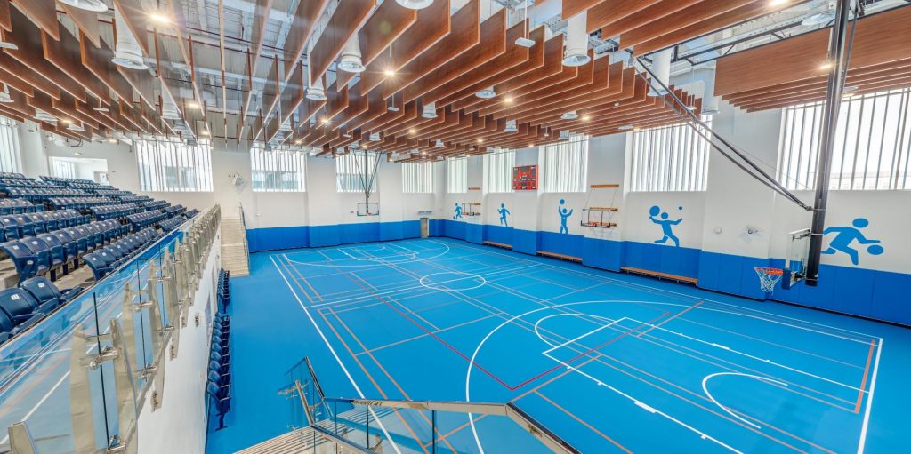 Ce bâtiment comporte plusieurs terrains et une salle d’activités évolutives conçue selon le programme français. Une salle de gym a également été conçue pour permettre au personnel de s’exercer au quotidien.