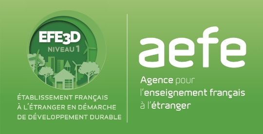 Le label « EFE3D », délivré par l’AEFE, reflète l’engagement de notre établissement en faveur de l’éducation au développement durable et met en valeur le travail mené par nos équipes.